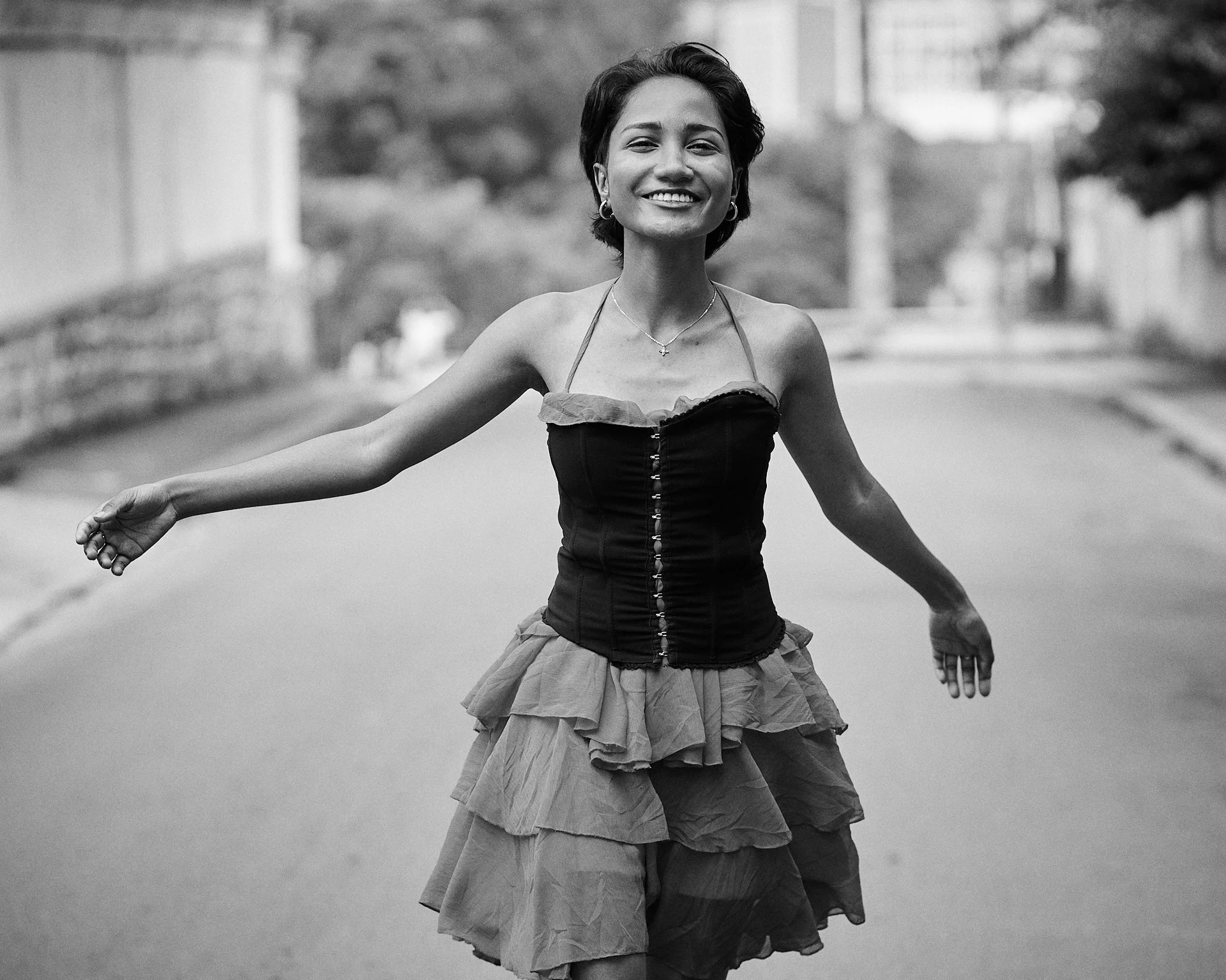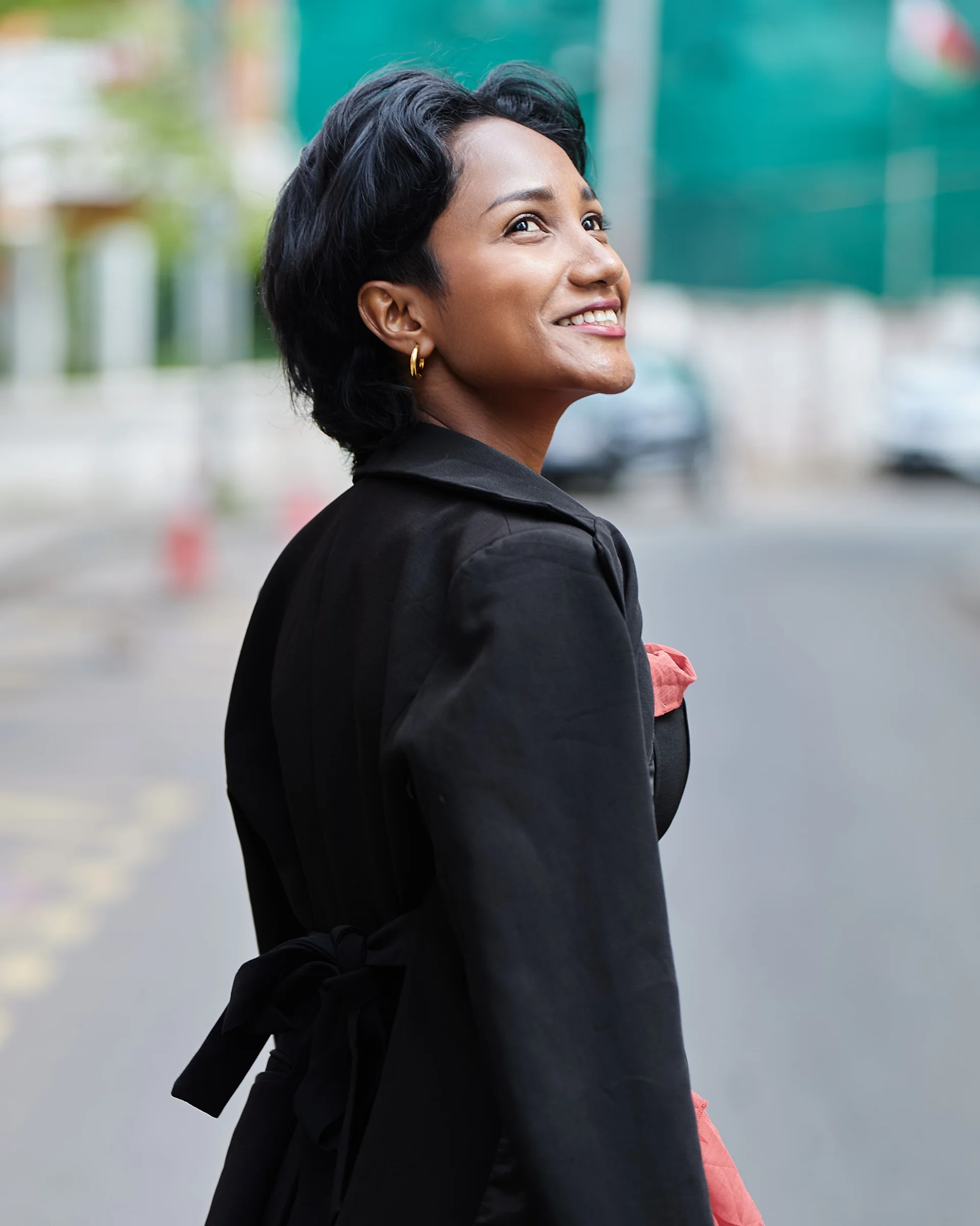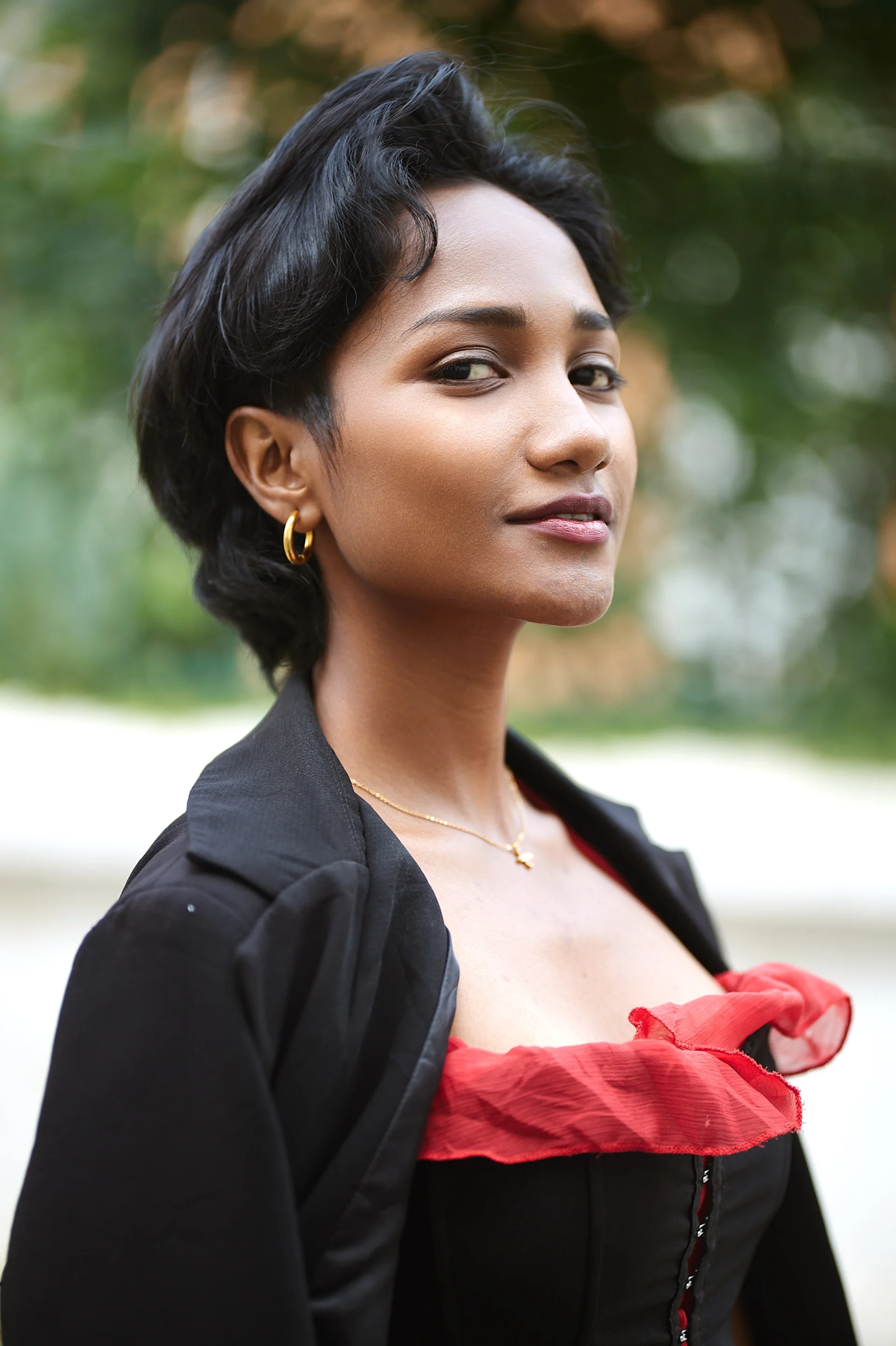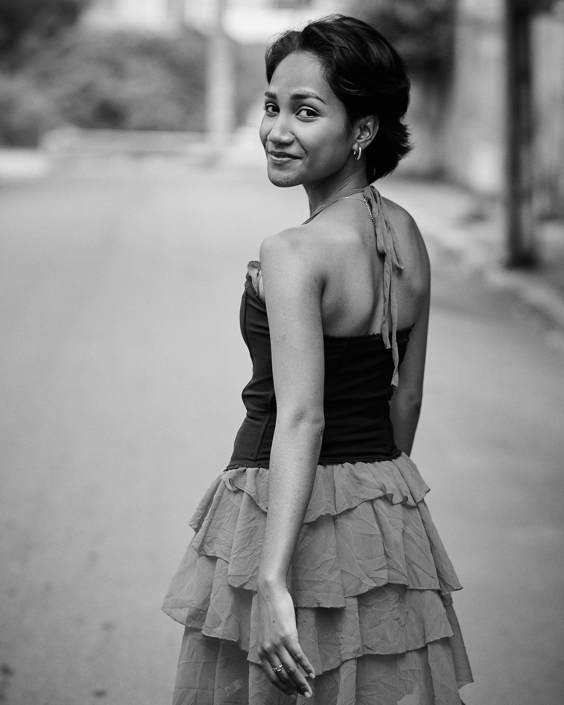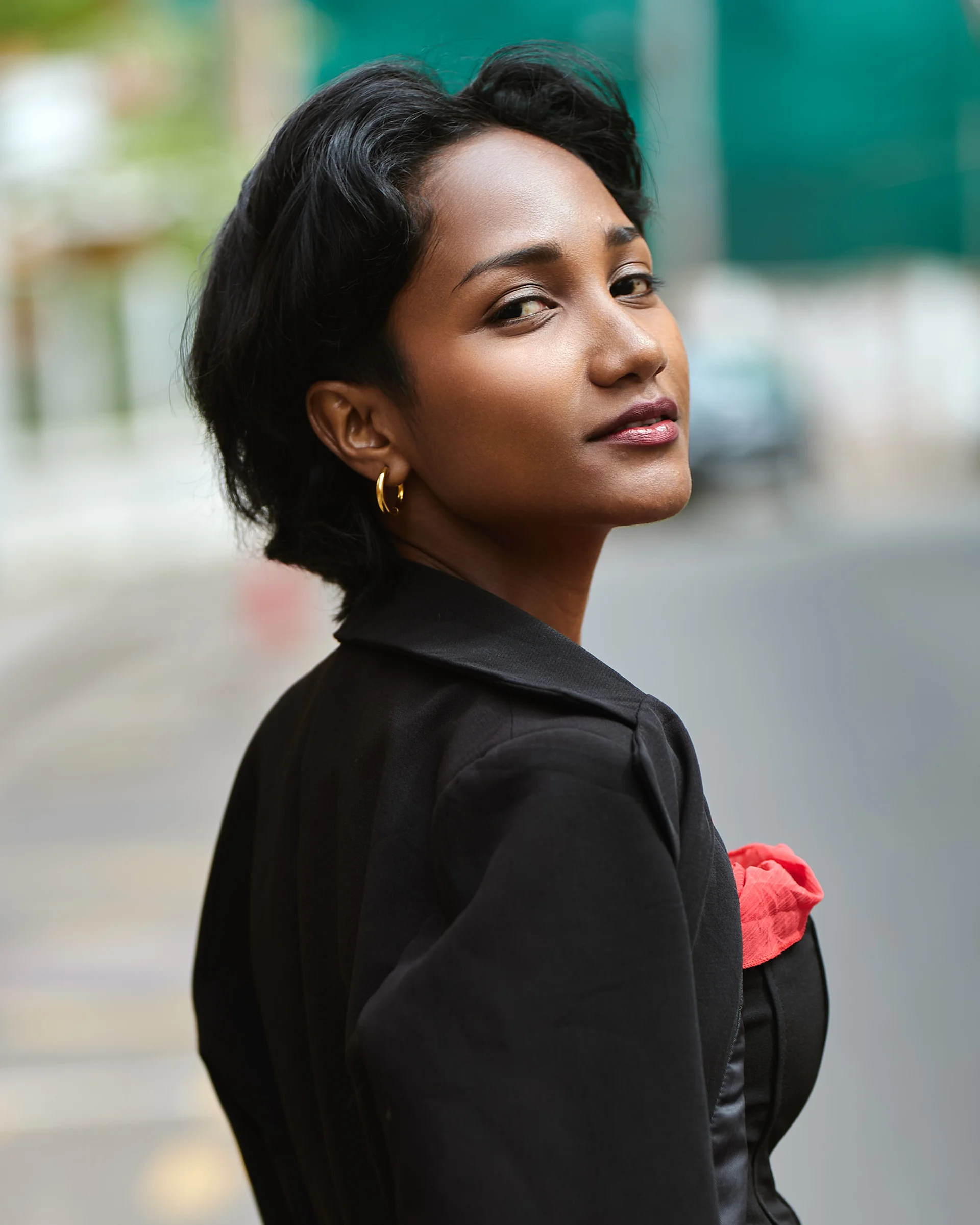 Christelle apporte une énergie audacieuse et romantique dans les rues d’Isoraka lors de cette séance mode, mêlant robe rouge volantée et corset noir à un manteau structuré et des bottes imposantes pour créer une vibe flamenco urbaine et moderne. L’alternance entre clichés en mouvement et portraits plus calmes met en valeur à la fois sa personnalité joueuse et sa présence forte et assurée dans ce décor citadin