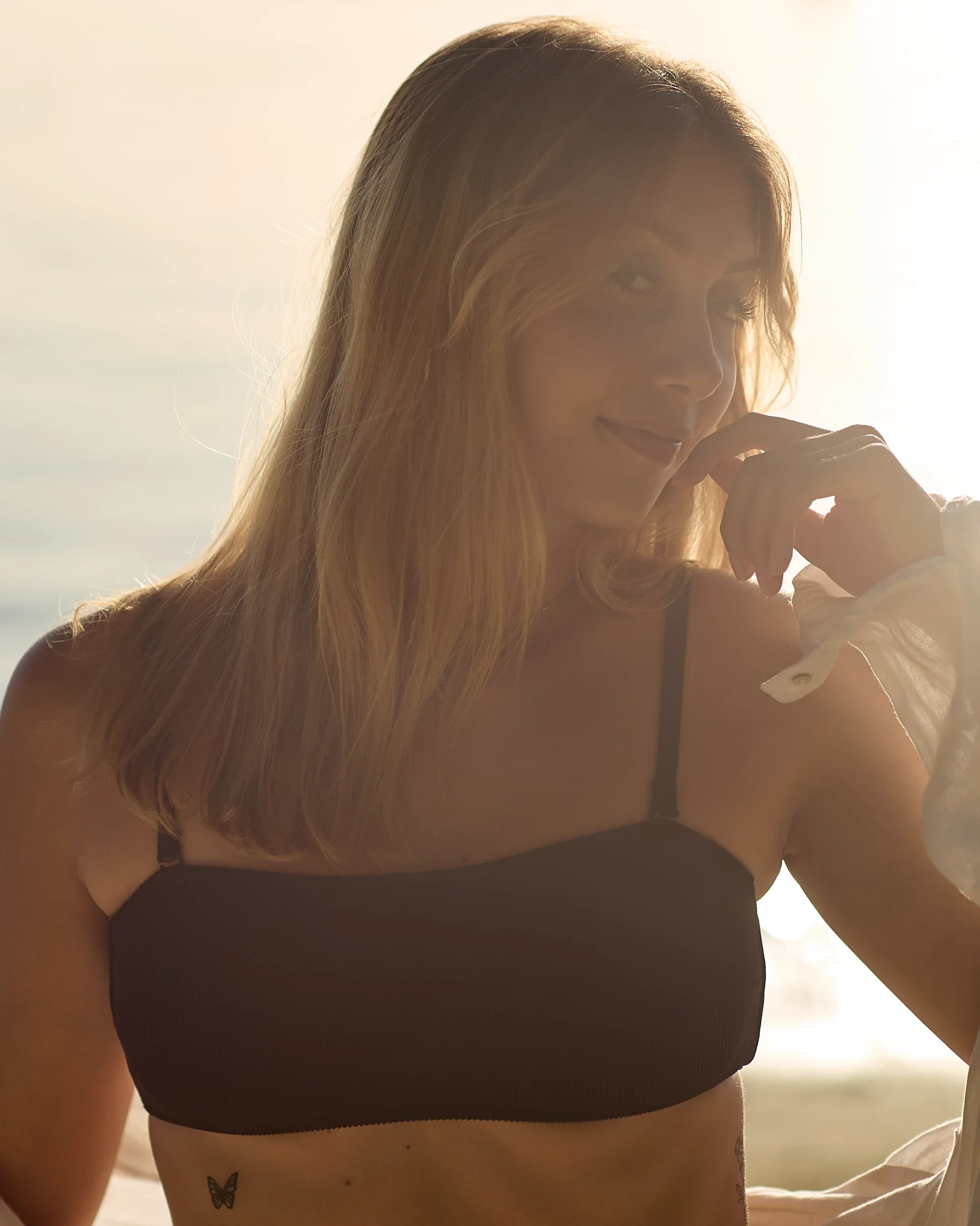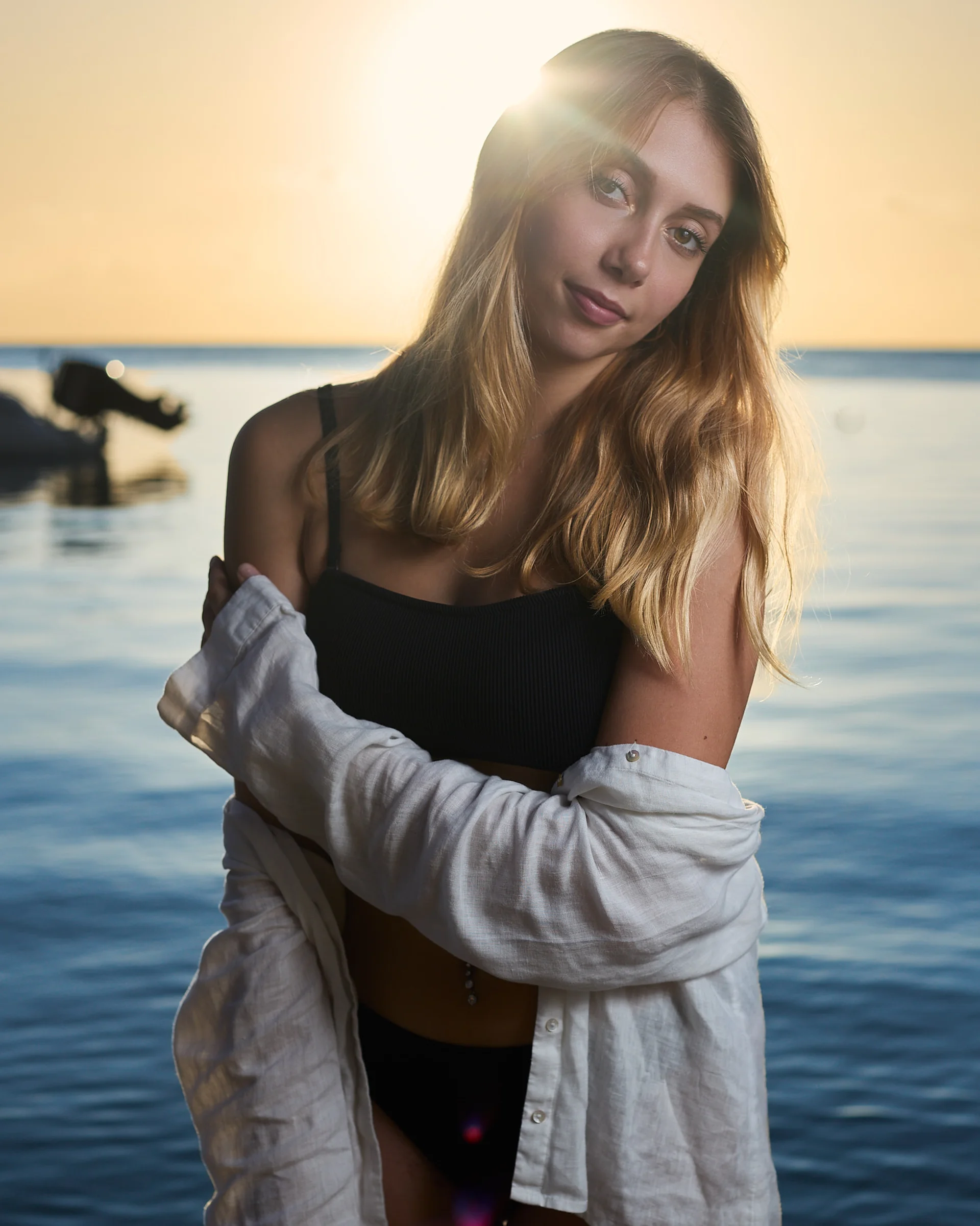 Séance photo portrait lifestyle avec Clélia sur la plage à l’Île Maurice, portraits naturels et lumineux au coucher du soleil par photographe portrait professionnel
