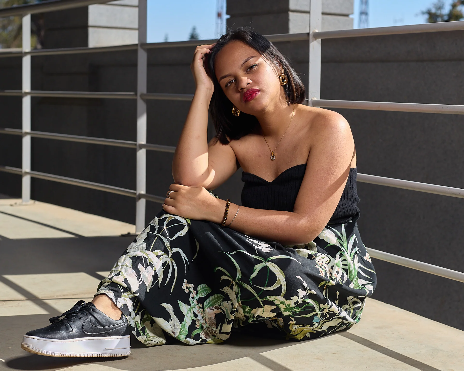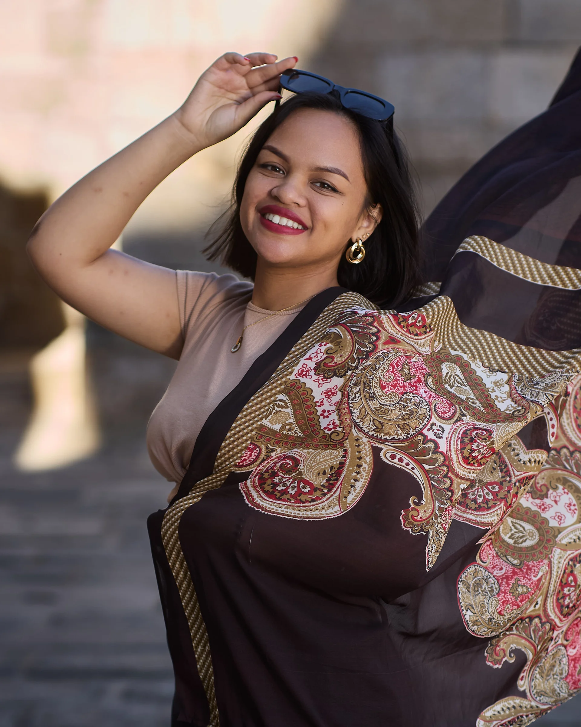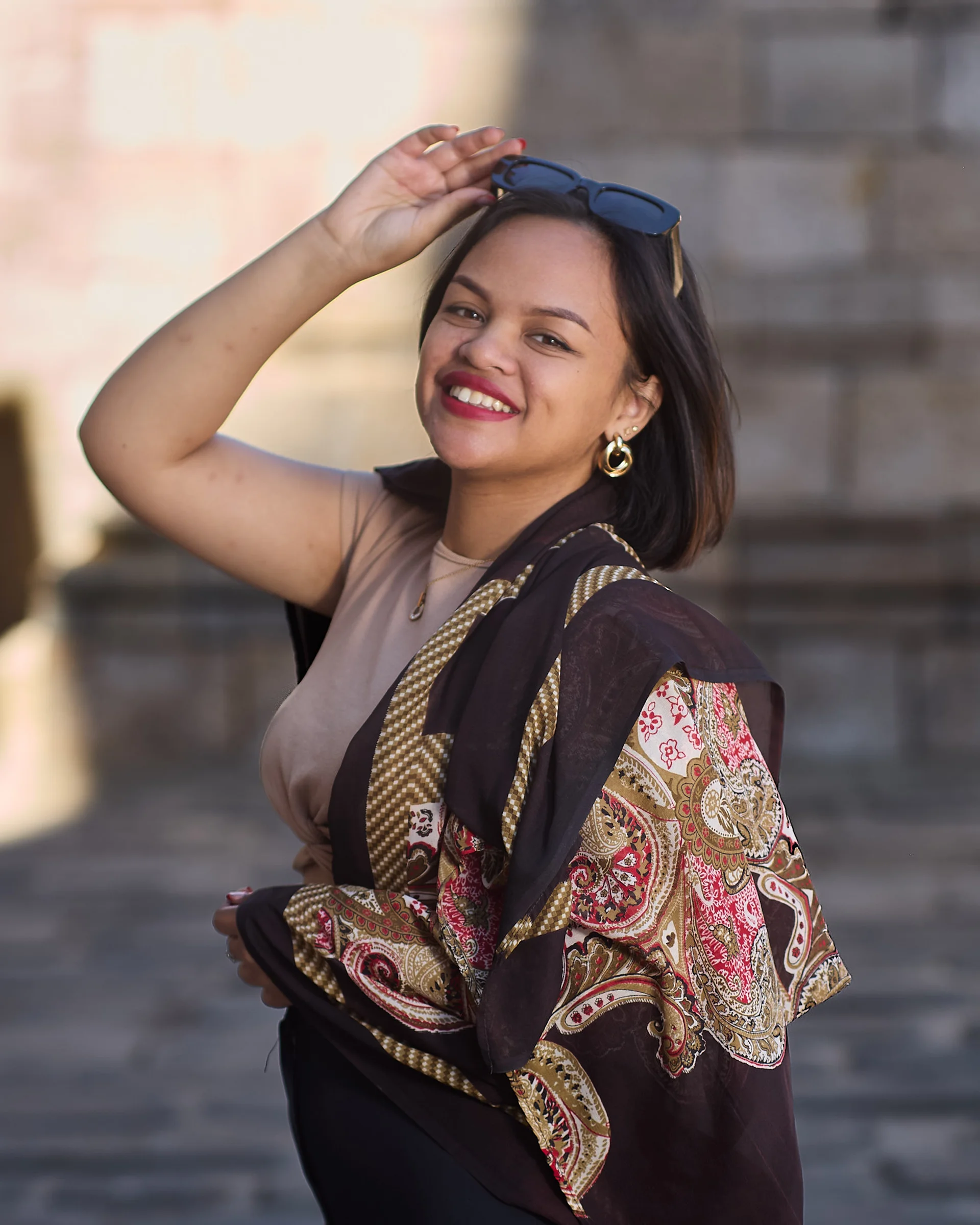 Séance photo portrait lifestyle avec Mitoela au Palais de la Reine à Antananarivo, portraits féminins lumineux pour personal branding et réseaux sociaux. réalisés par photographe portrait à l’Île Maurice