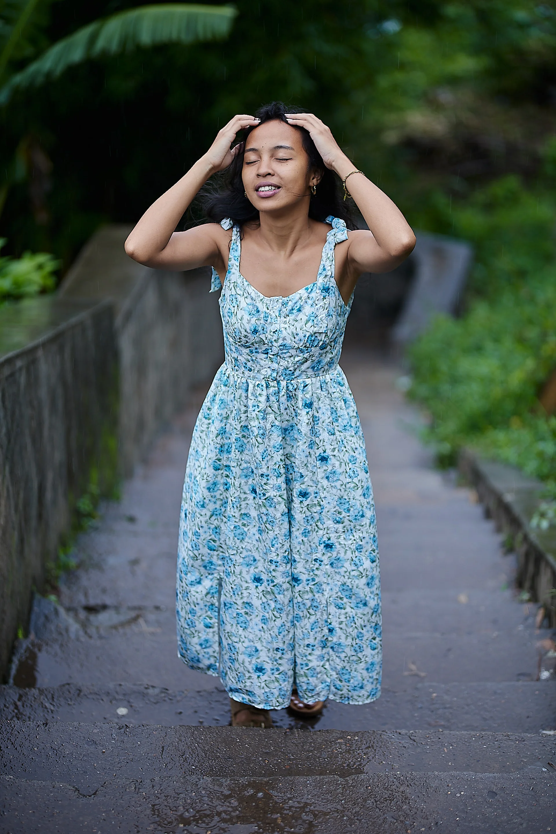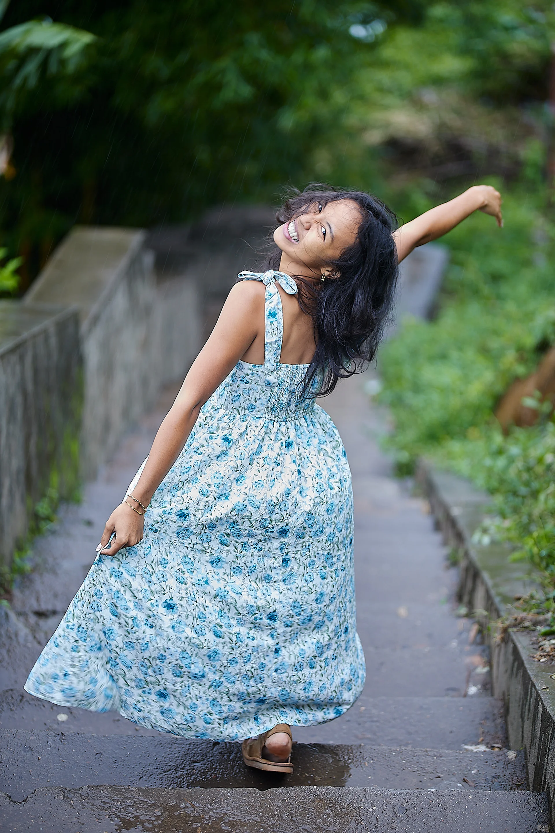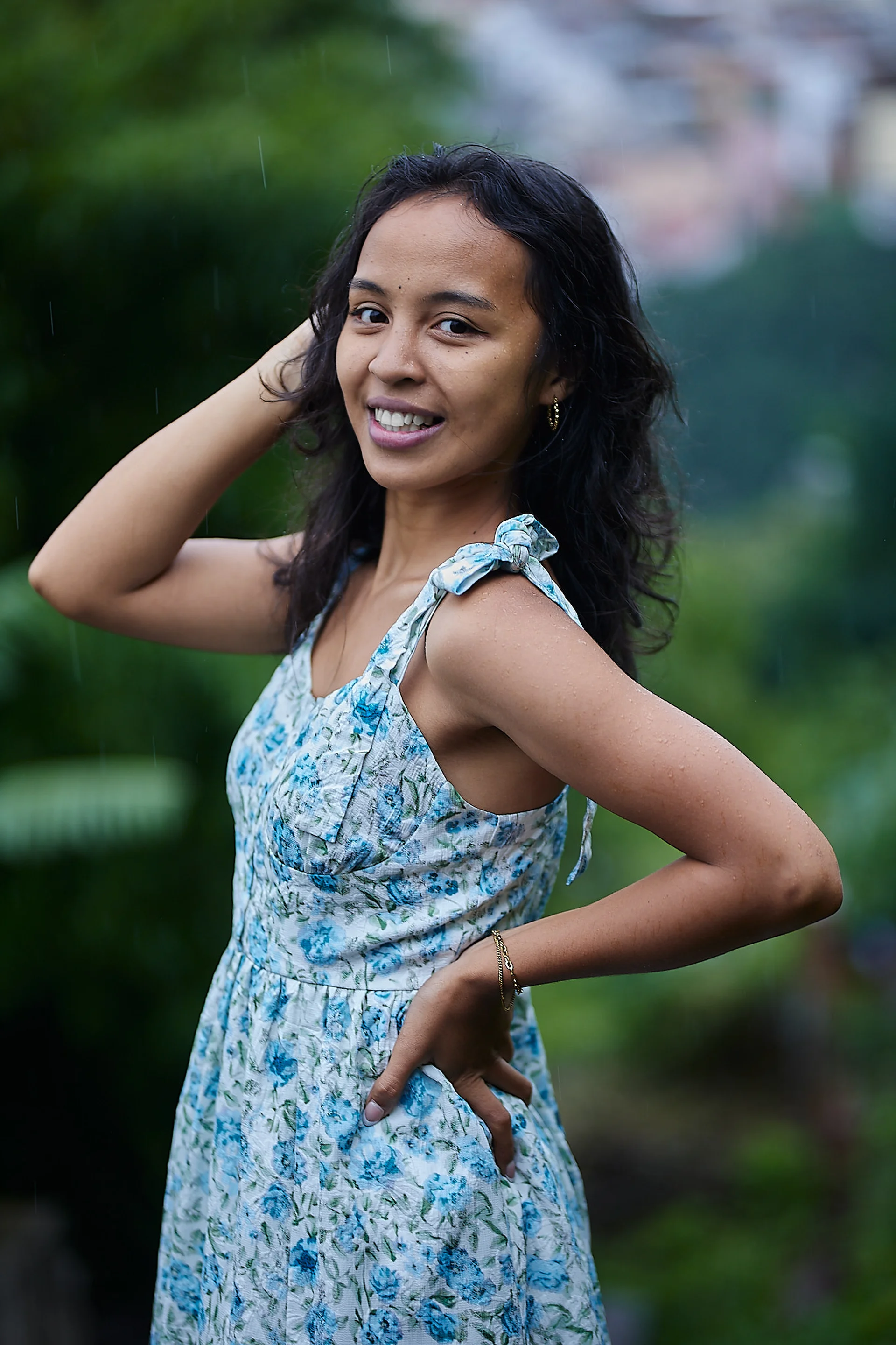 C'est alors que Tania, véritablement inspirée, m'a proposé de continuer sous la pluie. Ce moment d'audace a donné naissance à certains des clichés les plus puissants de la séance – des portraits qui respirent la liberté, l'authenticité, et une célébration viscérale du moment présent. La pluie, loin d'être un obstacle, s'est transformée en élément narratif, ajoutant de la profondeur émotionnelle et du contraste cinématique à nos images.